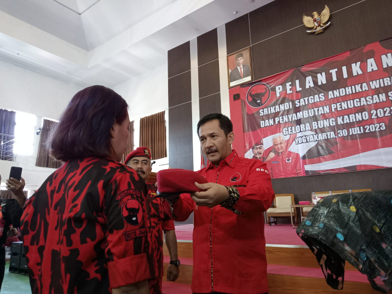 Ketua Dewan Pimpinan Cabang (DPC) PDI Perjuangan Kota Yogyakarta Eko Suwanto melantik 16 anggota baru Srikandi Satgas Andhika Wiratama di Kantor DPD PDI Perjuangan.